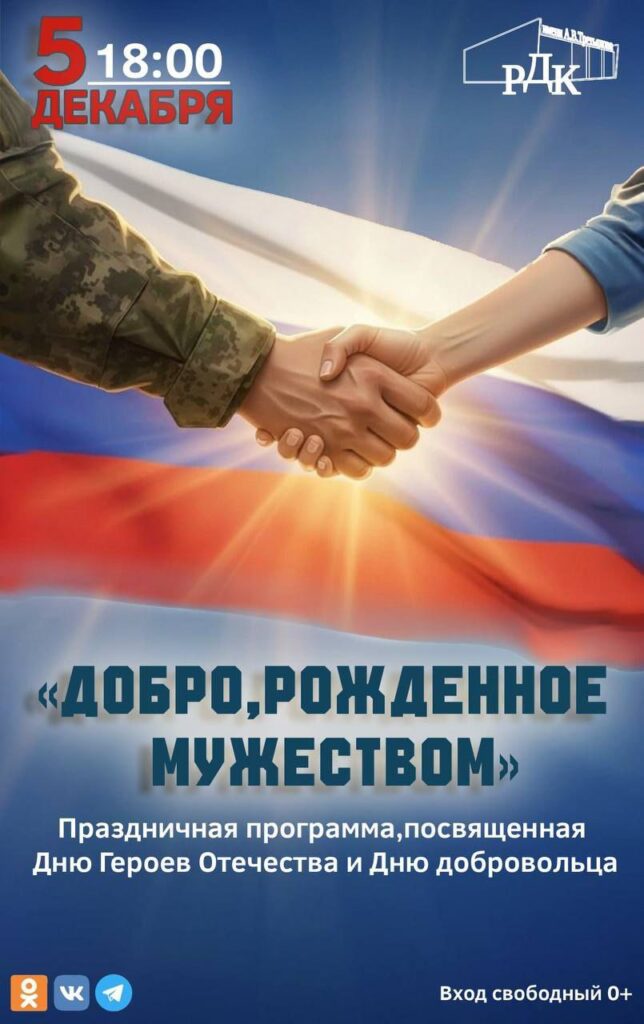 Жителей Неклиновского района приглашают на концерт, посвященный Дню Героев и Дню добровольца. Он состоится 5 декабря в 18.00. в РДК.