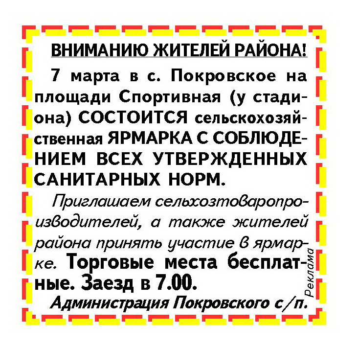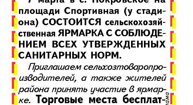 7 марта в нашем районном центре, на площади Спортивной у стадиона состоится традиционная сельскохозяйственная ярмарка.