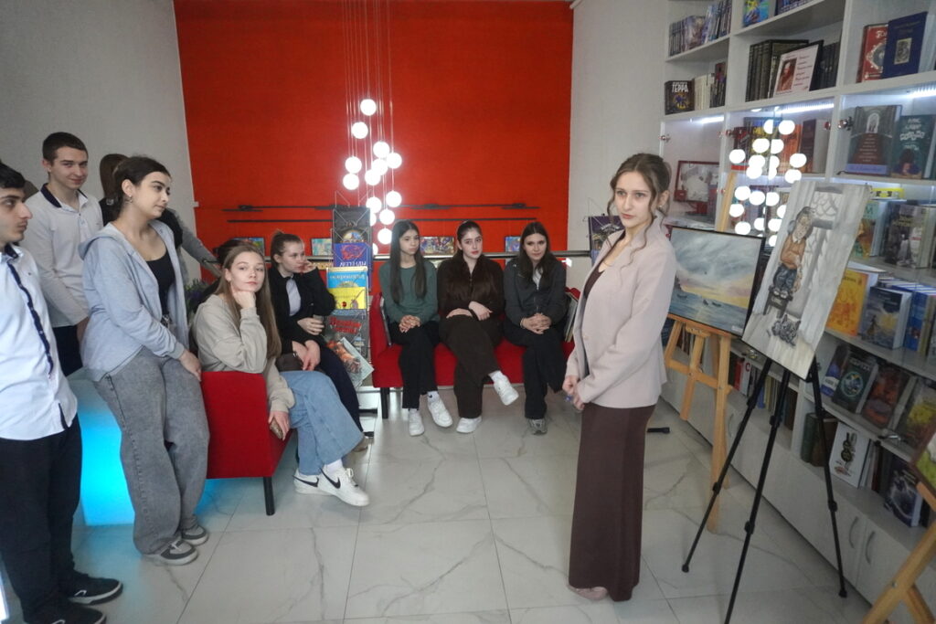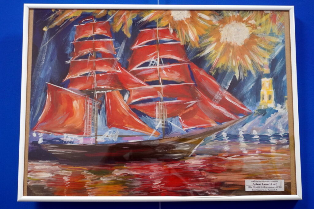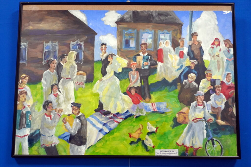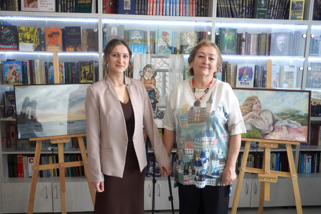 — Это копия обложки моей любимой книги «Маленькие женщины». Вот, наверное, любовь к этой книге меня вдохновила на написание этой работы, — рассказала Олеся. Она подробно познакомила гостей выставки с каждой своей работой. С картиной «Грусть», название которой отражалось в ее тусклой цветовой гамме. С живописным пейзажем «Яблоки в саду», выполненном гуашью, на который автора вдохновил обычный сельский дворик. С картиной «Алые паруса» — иллюстрацией к одноименной повести Грина. С композицией «Свадьба в деревне» — с караваем, баяном, весельем. И многими другими своими работами,каждая из них — прекрасна, даже в мелочах. Часть картин представлена на полотнах, часть — в электронном варианте, поскольку возможности выставочной площади библиотеки не могли вмесить все работы Олеси. Если есть возможность, приходите, посмотрите на эти картины, не пожалеете о прекрасно проведенном времени!