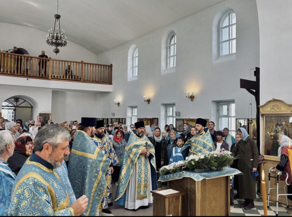 Иерей Сергий Кропивницкий поздравил присутствующих с престольным днем и напомнил об истории праздника Покрова Пресвятой Богородицы, отметив его духовное значение как символ заступничества и защиты Божией Матери.