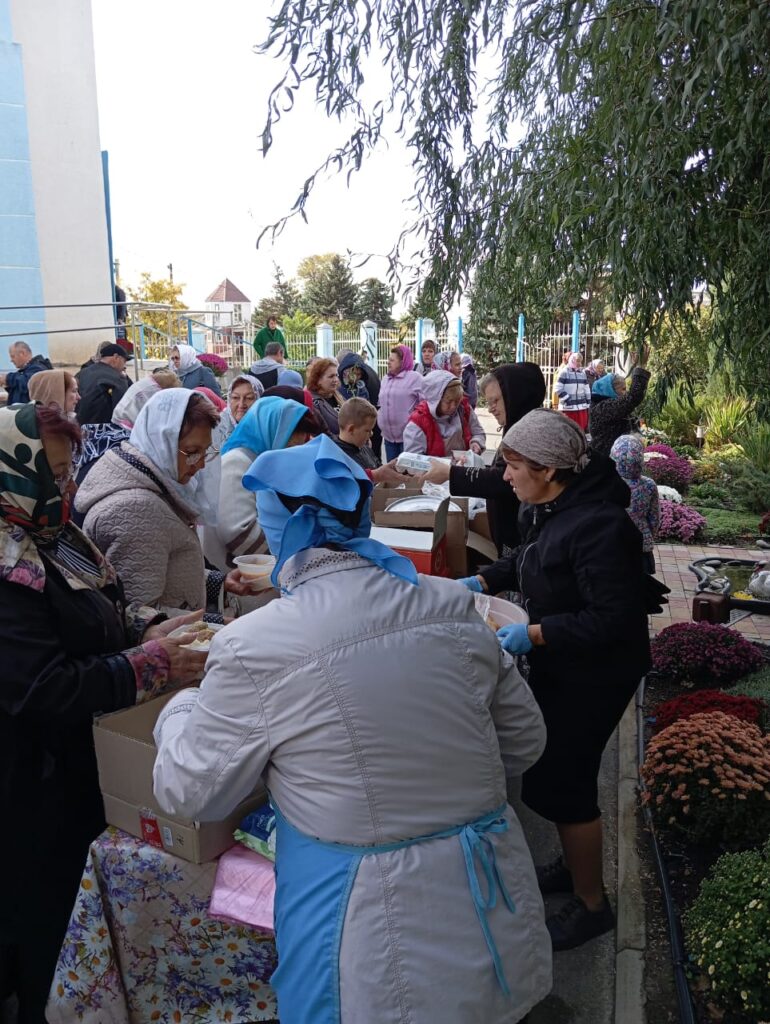 По окончании литургии состоялся крестный ход, затем прихожан пригласили на общую трапезу, организованную сестричеством храма.