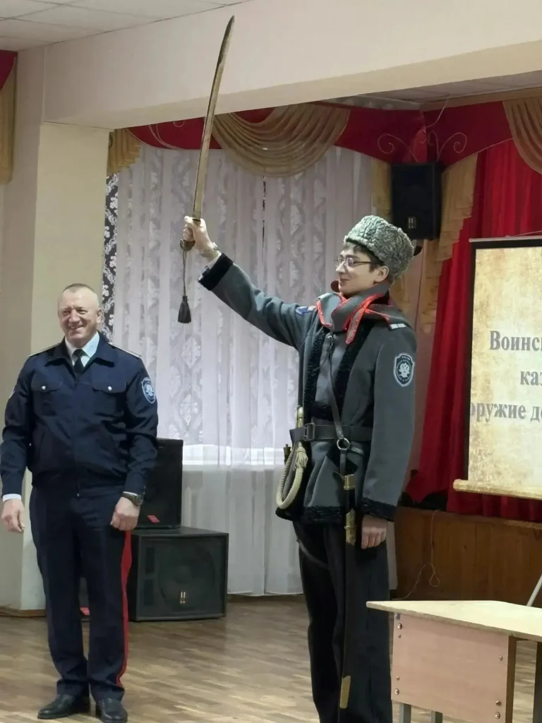Продолжением темы исторических блоков стала беседа о патриотах настоящего «Герои в лицах» – встреча с участником СВО, ветераном боевых действий, первым заместителем (товарищем) атамана ЮКО «Неклиновский юрт» ТО ВКО «ВВД» и командиром казачьей дружины Неклиновского района А.В. Герасименко.