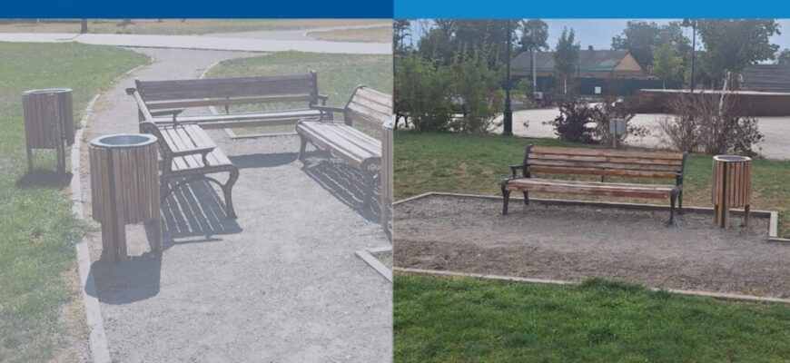 Через Платформу обратной связи жительница сообщила о выломанной стойке качели, передвинутых лавочках и вытоптанной траве в Парке «Редут» села Николаевка.