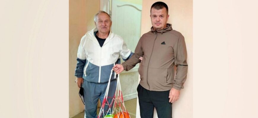 Подарил школьникам набор мячей для занятий спортом