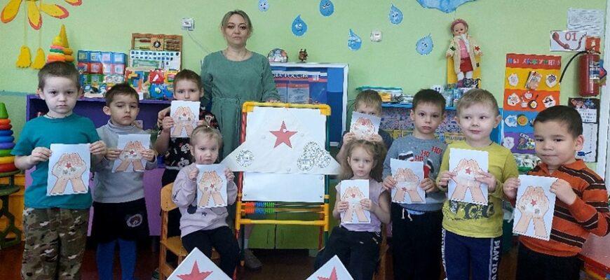 Воспитатель Юлия Владимировна провела для детей тематическое занятие по рисованию с элементами аппликации «Письмо солдату».