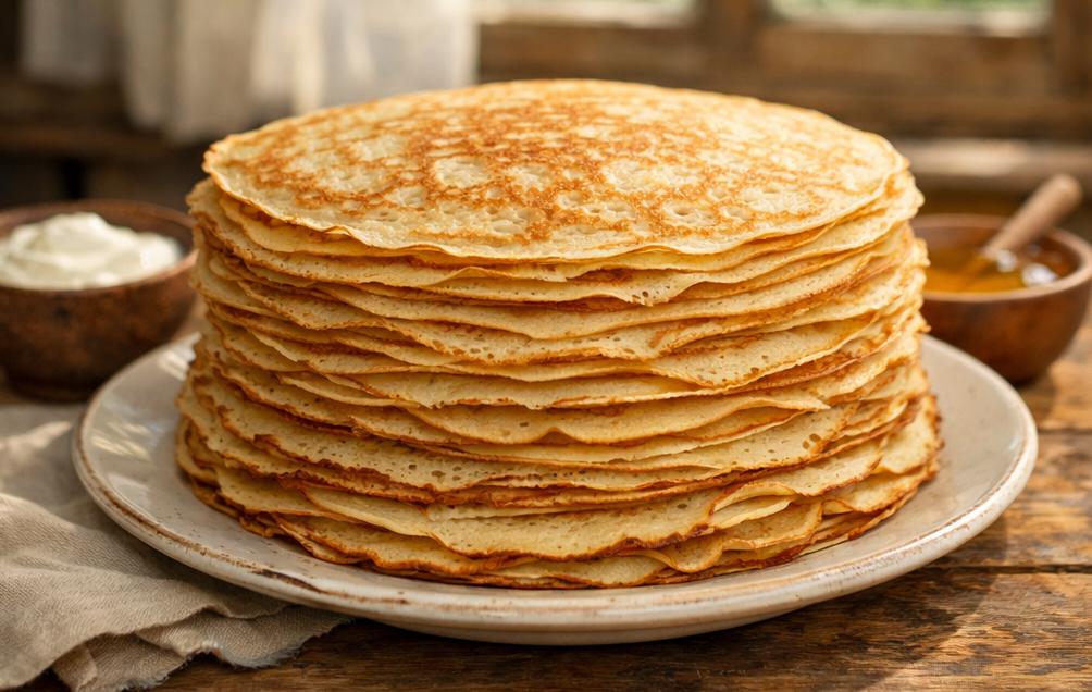 Соблюдая этот рецепт, вы получите идеальные блины к Масленице 2026 — тонкие, нежные и ароматные. Идеально для праздничного стола с вареньем, сметаной или мёдом.
