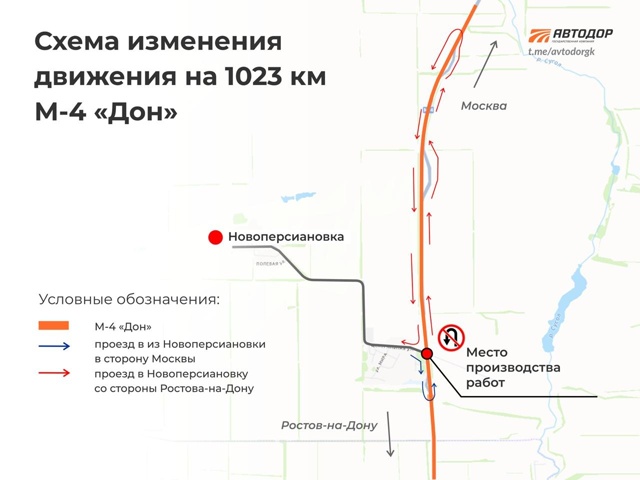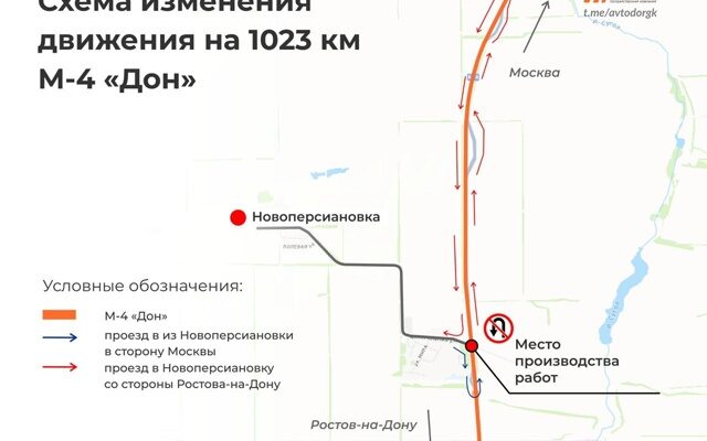 Отправляющимся в дальний путь водителям надо знать, что 25 октября, на 1023 км автодороги М-4 «Дон» перекроют разворот к поселку Новоперсиановка. Об этом напоминает ГК «Автодор».