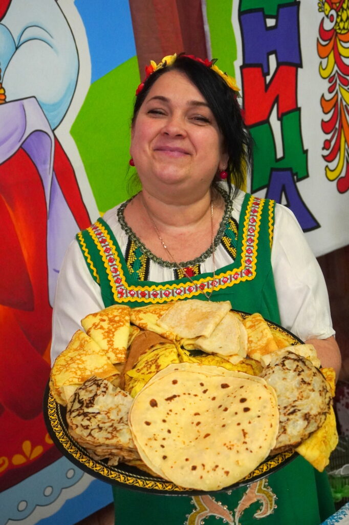 Здесь состоялся многолюдный, веселый, щедрый праздник. Всем, кто в нем участвовал, досталось в избытке и хорошее настроение, и угощение — конечно, очень вкусные, с любовью приготовленные блины и чай.