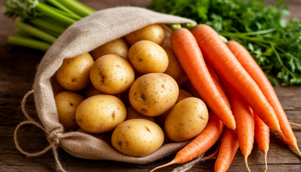 - Картофель лучше хранится в емкостях из дышащих материалов, например, в мешках или картонных коробках.