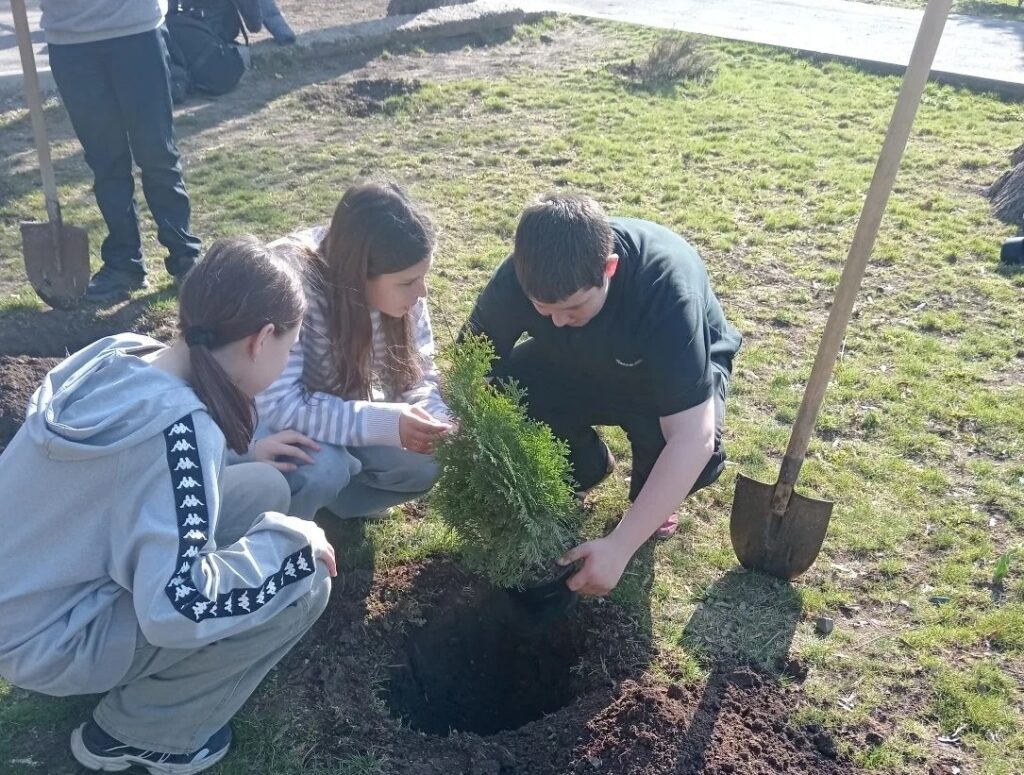 Школьники с энтузиазмом взялись за дело — каждый саженец стал частичкой их заботы о месте, где они учатся и растут.