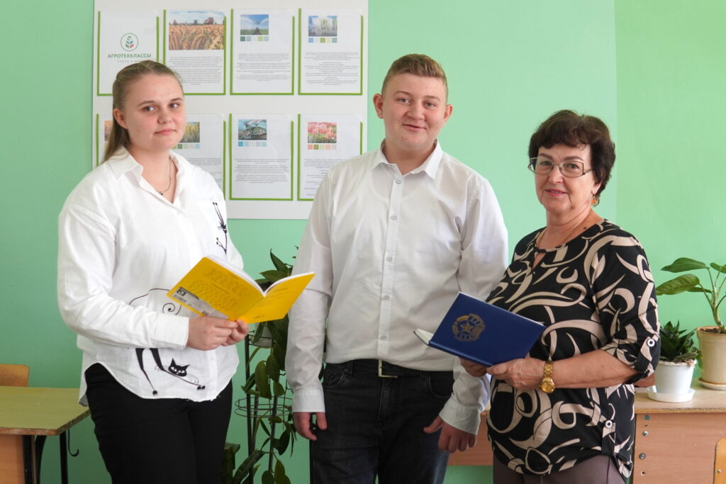 На снимках: ученики 9-в класса — агрокласса Покровской средней школы №2; учащиеся Серафима Сорокина и Николай Лаптев с учителем биологии Еленой Петровной Поршневой.