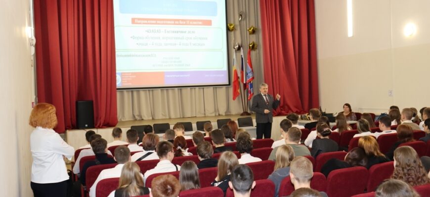 В ходе встречи будущим выпускникам подробно рассказали о направлениях подготовки и специальностях, на которые можно поступить после 11 класса, а также о программах среднего профессионального образования для девятиклассников. Школьники узнали об условиях приёма, особенностях обучения, перспективах трудоустройства и карьерного роста.