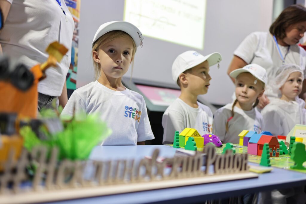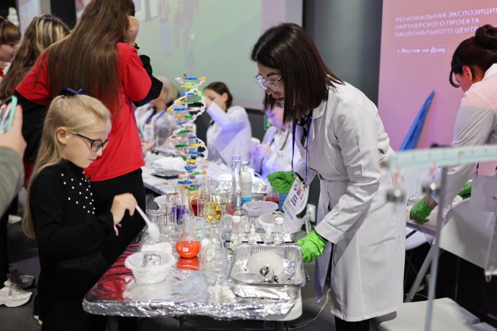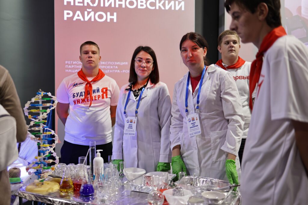 В сфере образования демонстрировались проекты «Точек роста» и Кванториума, где школьники углубленно занимаются естественными и гуманитарными науками. Также были представлены инициативы школьников – участников «Движения Первых», которые реализуют экологические проекты и оказывают помощь участникам специальной военной операции.