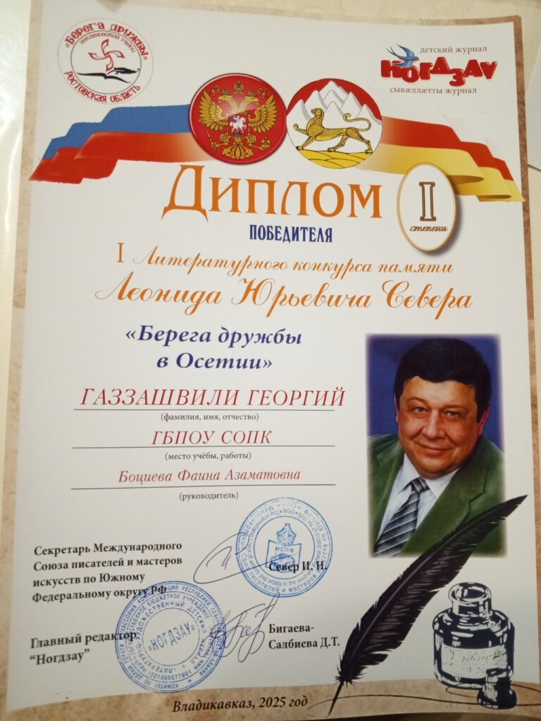 Открыл эти грандиозные республиканские события Первый литературный конкурс «Берега дружбы в Осетии памяти Леонида Юрьевича Севера» в Доме детского творчества «Заря», организатором которого выступил детский журнал «Ногдзау».
