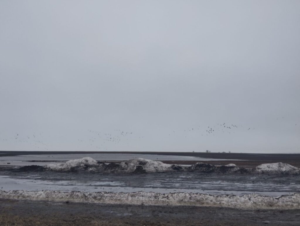 Утки плавают с таким важным видом, будто они тут прописаны с рождения и знают каждый метр будущих огородов. А иногда на эти временные моря заявляются настоящие дикие гуси — огромные, шумные, как соседский трактор поутру. Сидят, гогочут на всю округу, обсуждают что-то своё, гусиное. Возможно, курс на юг или качество местного чернозёма.